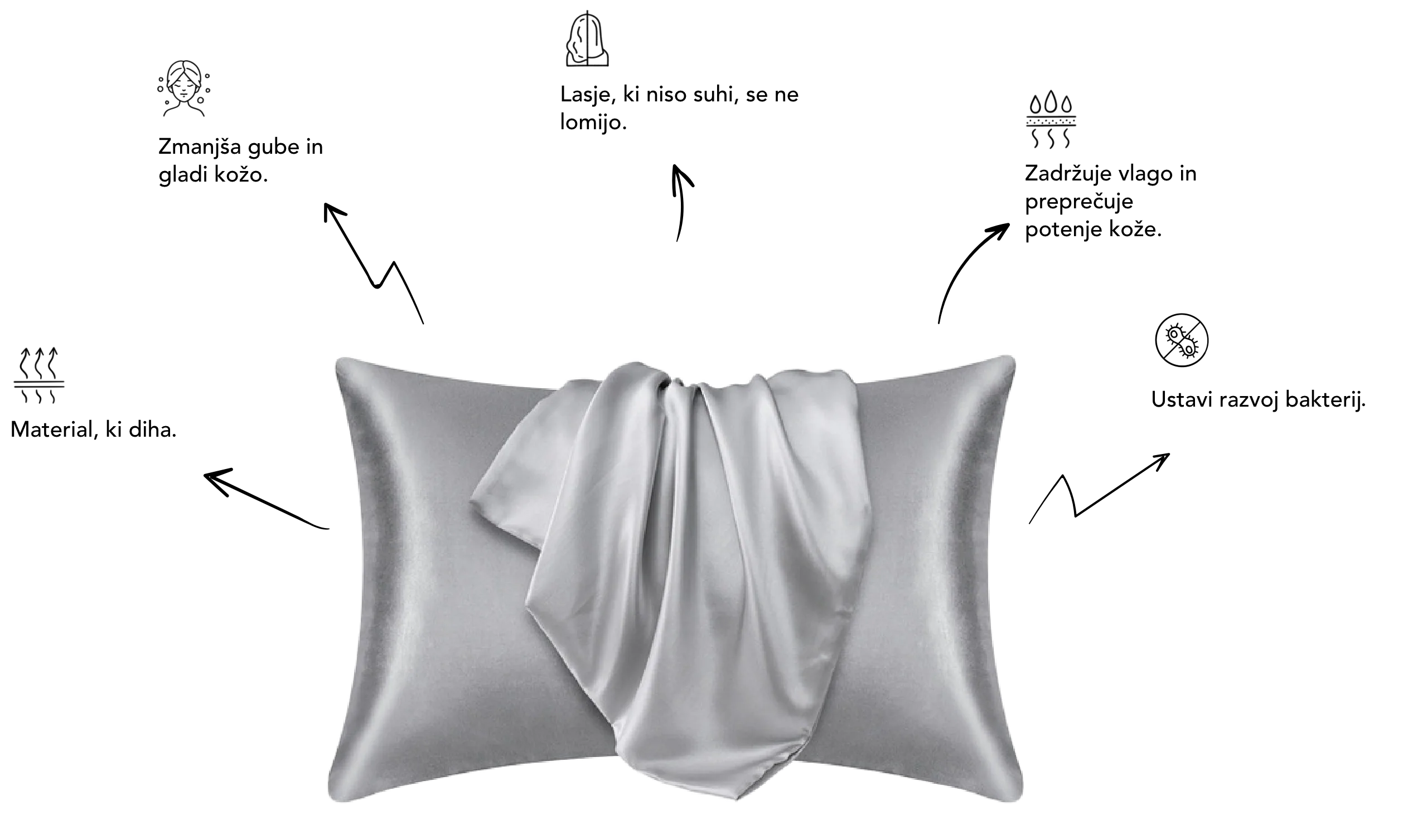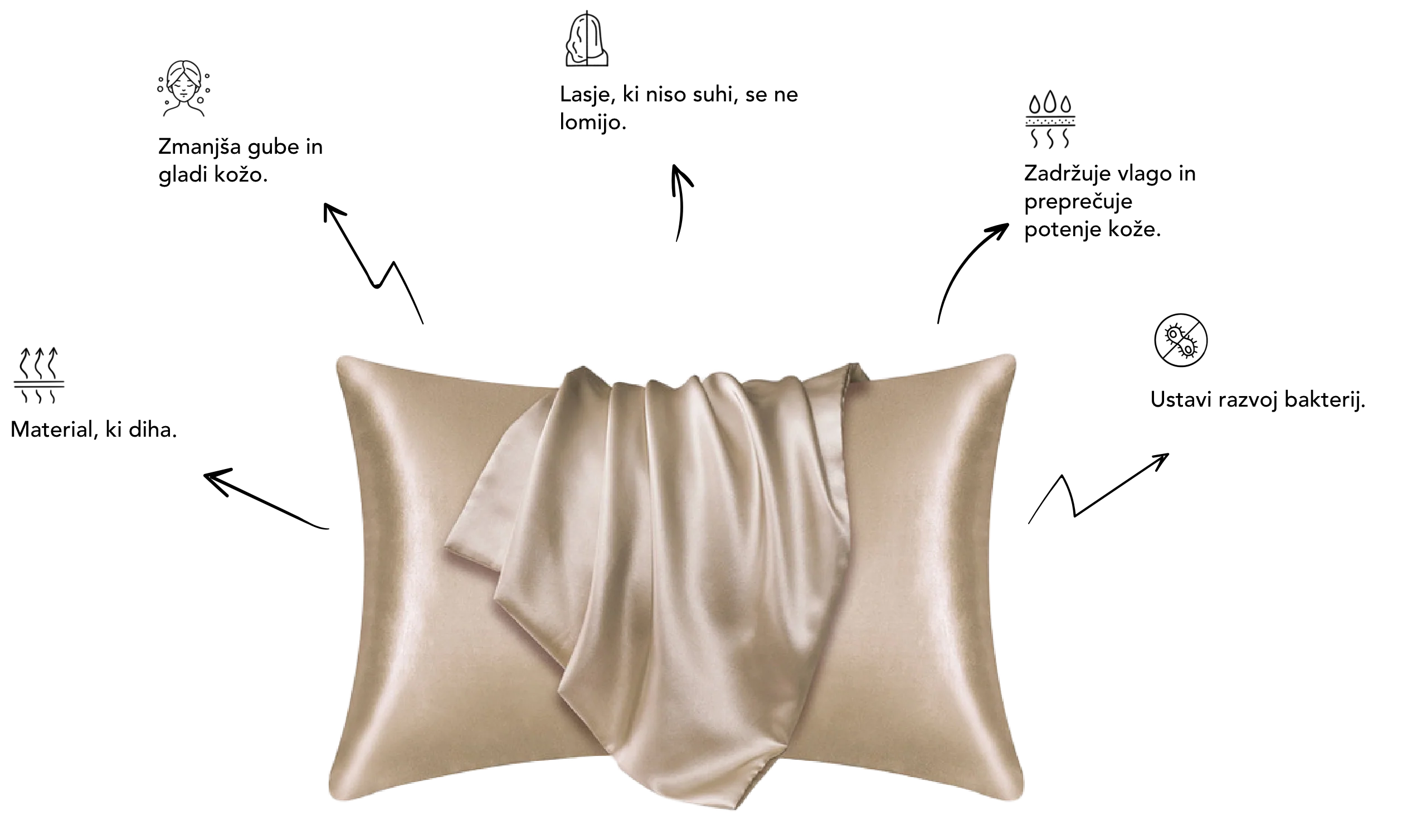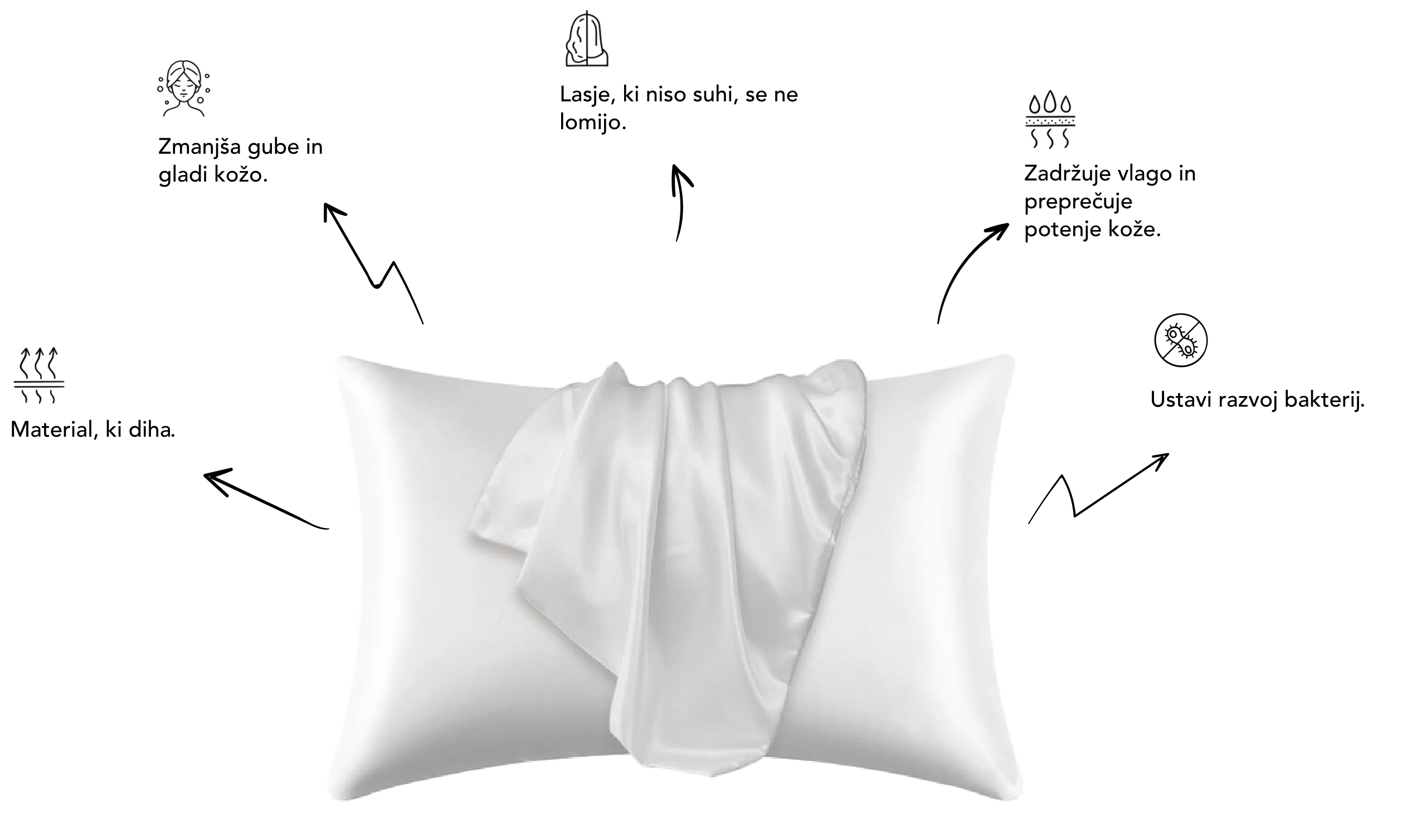 Svila je material, ki uravnava temperaturo. Manj potenja, pore dihajo in zagotovljena je bolj gladka koža zjutraj.