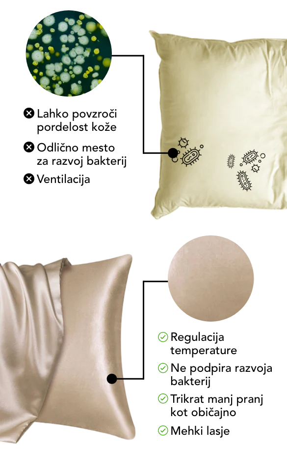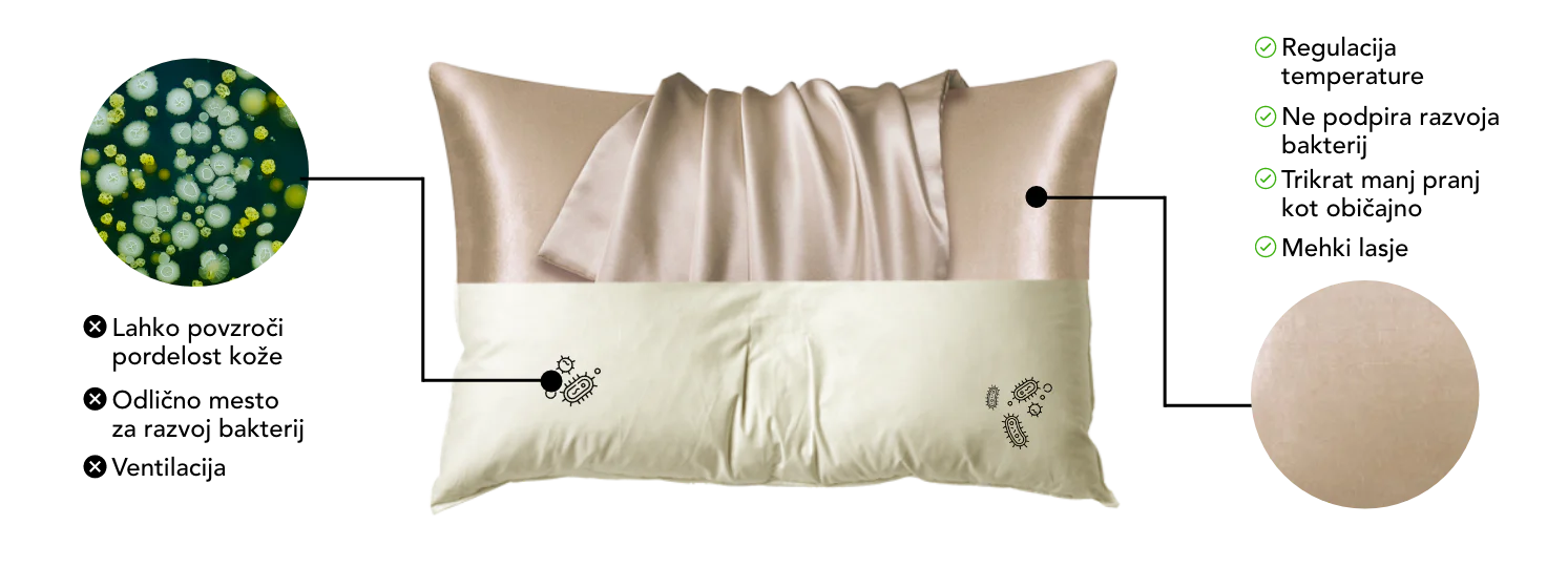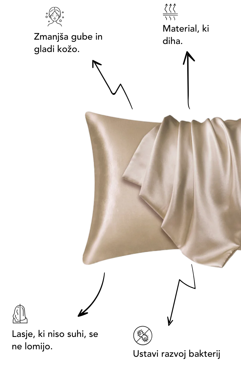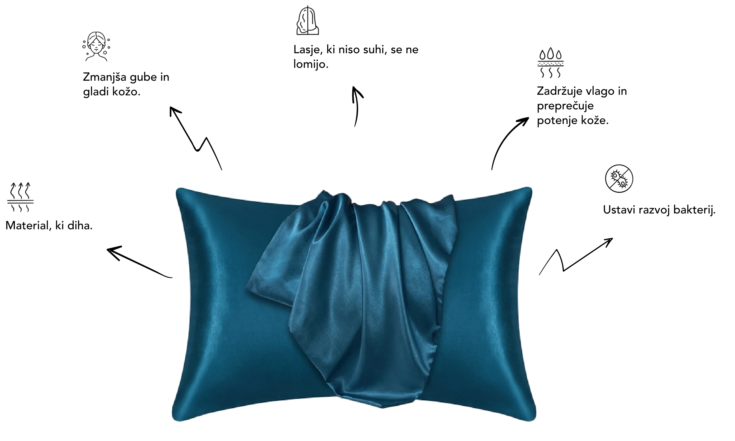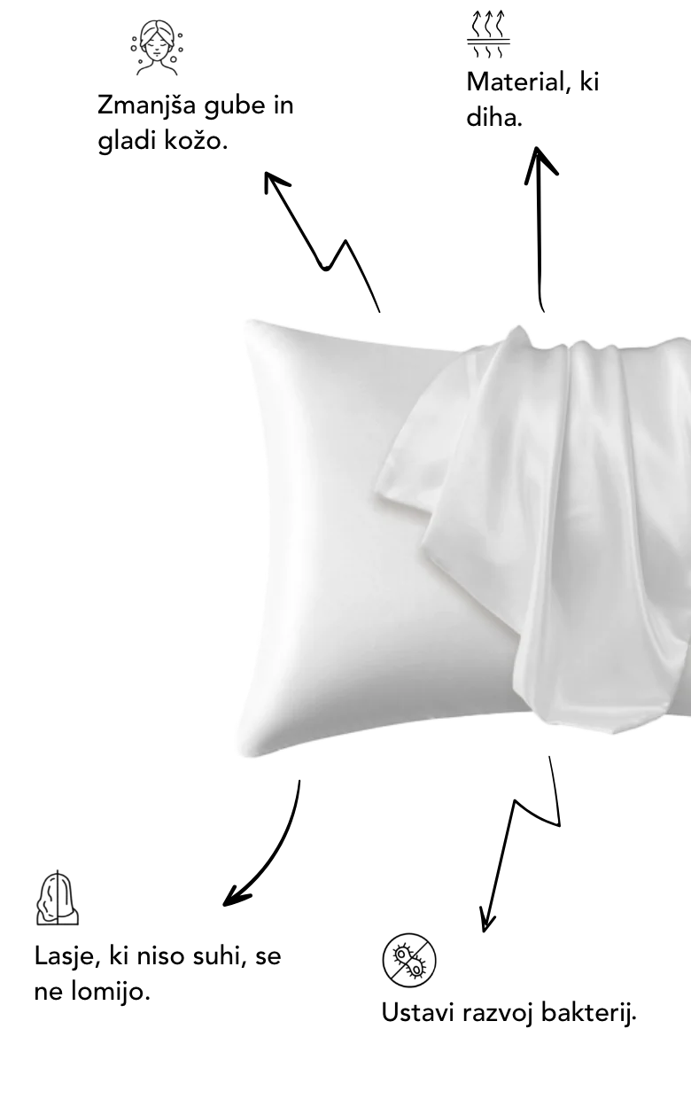 Svila je material, ki uravnava temperaturo. Manj potenja, pore dihajo in zagotovljena je bolj gladka koža zjutraj.