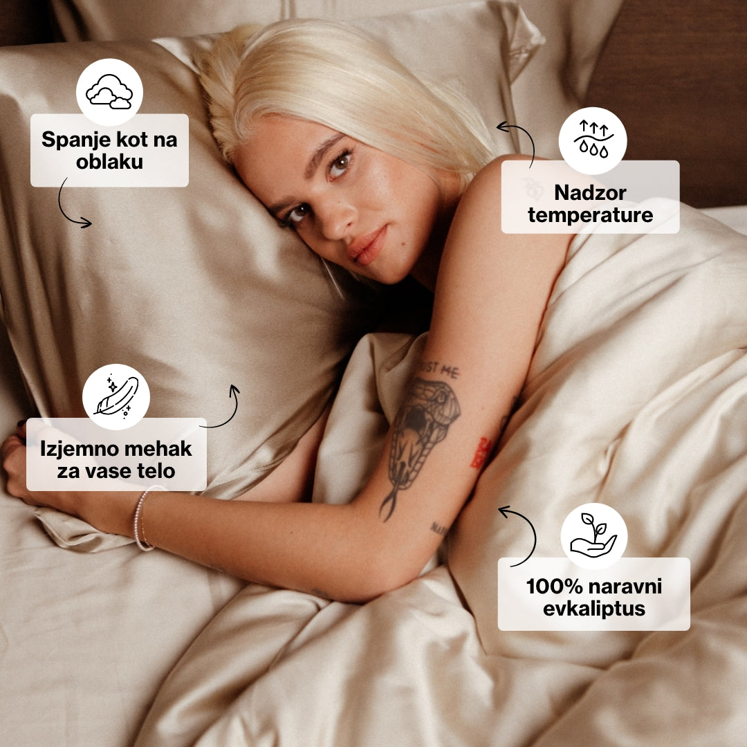 Komplet vsebuje: prevleko za odejo iz evkaliptusa in rjuho (z elastiko)